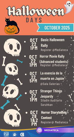 La mediateca te ofrece diferentes actividades que reforzarán tus habilidades de los idiomas Inglés y Francés. Aquí podrás: